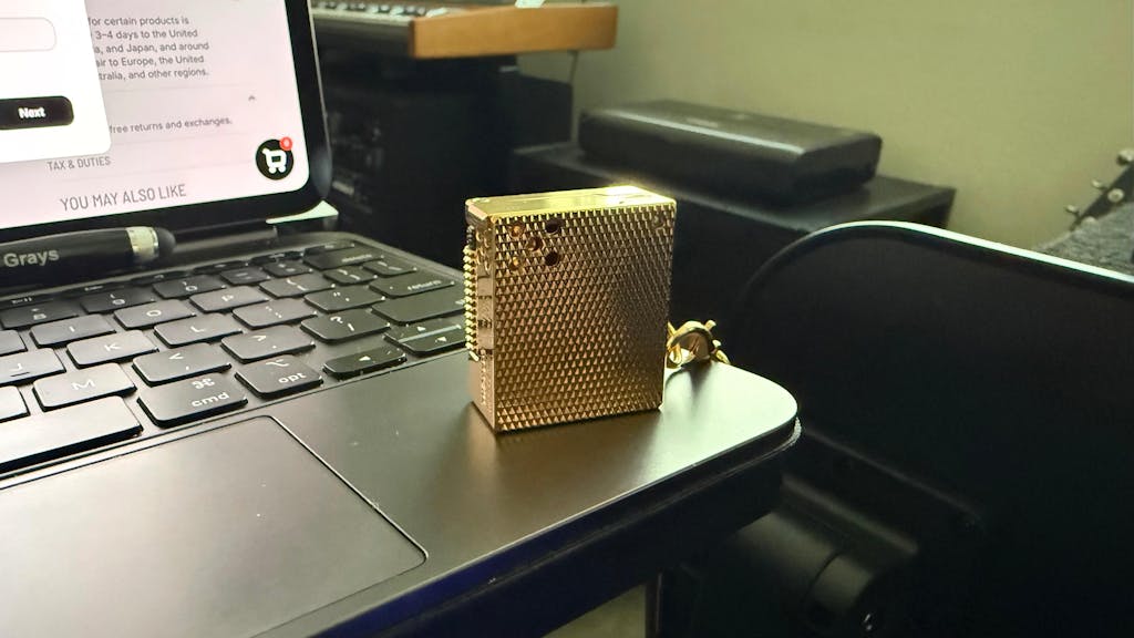 The Mini Cube Golden Mesh is an extremely well made lighter! The size of the lighter is fantastic, and it has a little heft for its size… The sounds this lighter makes when opening and closing it, lighting it, etc… you can hear the quality! Thank you Thorens for a great product and experience!